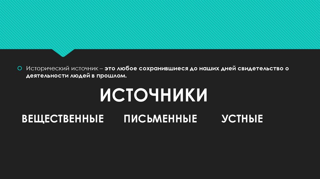 Исторический источник – это любое сохранившиеся до наших дней свидетельство одеятельности людей в прошлом.