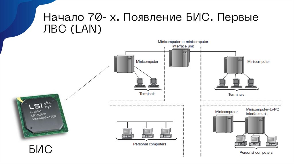 Появление больших интегральных схем, первые мини-компьютеры, первые