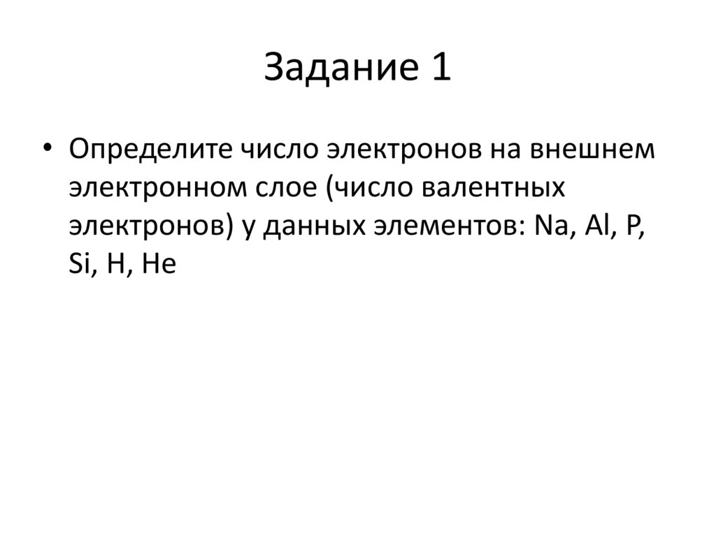 • Определите число электронов на внешнемэлектронном слое (число валентных