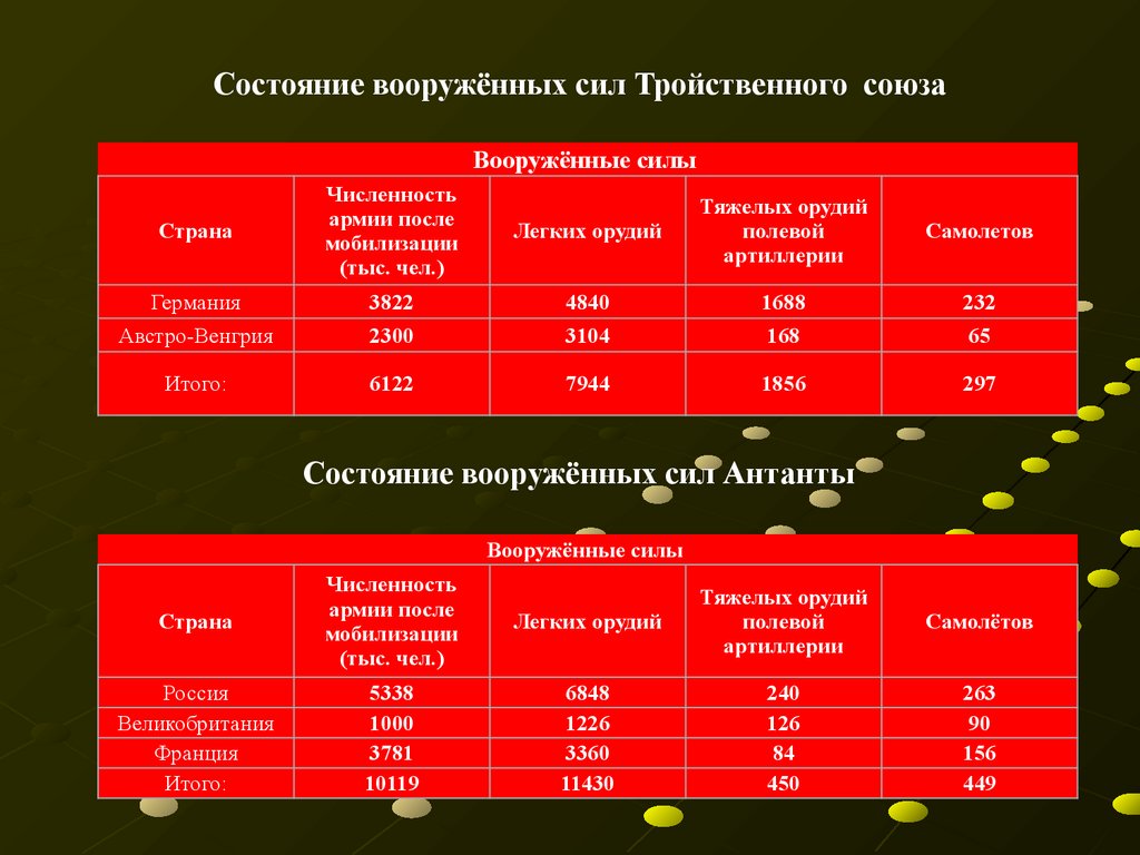 Состояние вооружённых сил Тройственного союзаВооружённые силы