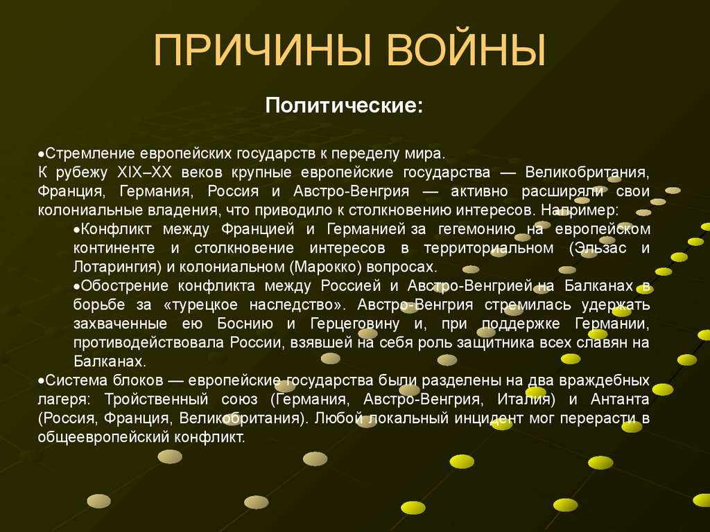 ПРИЧИНЫ ВОЙНЫПолитические: