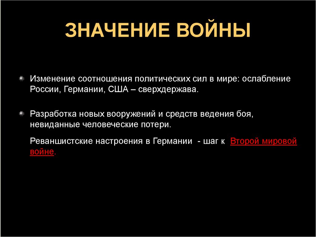 ЗНАЧЕНИЕ ВОЙНЫИзменение соотношения политических сил в мире: ослабление