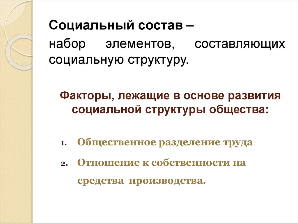 2. Социальная структура - совокупность взаимосвязанных элементов, составляющих внутреннее строение общества.