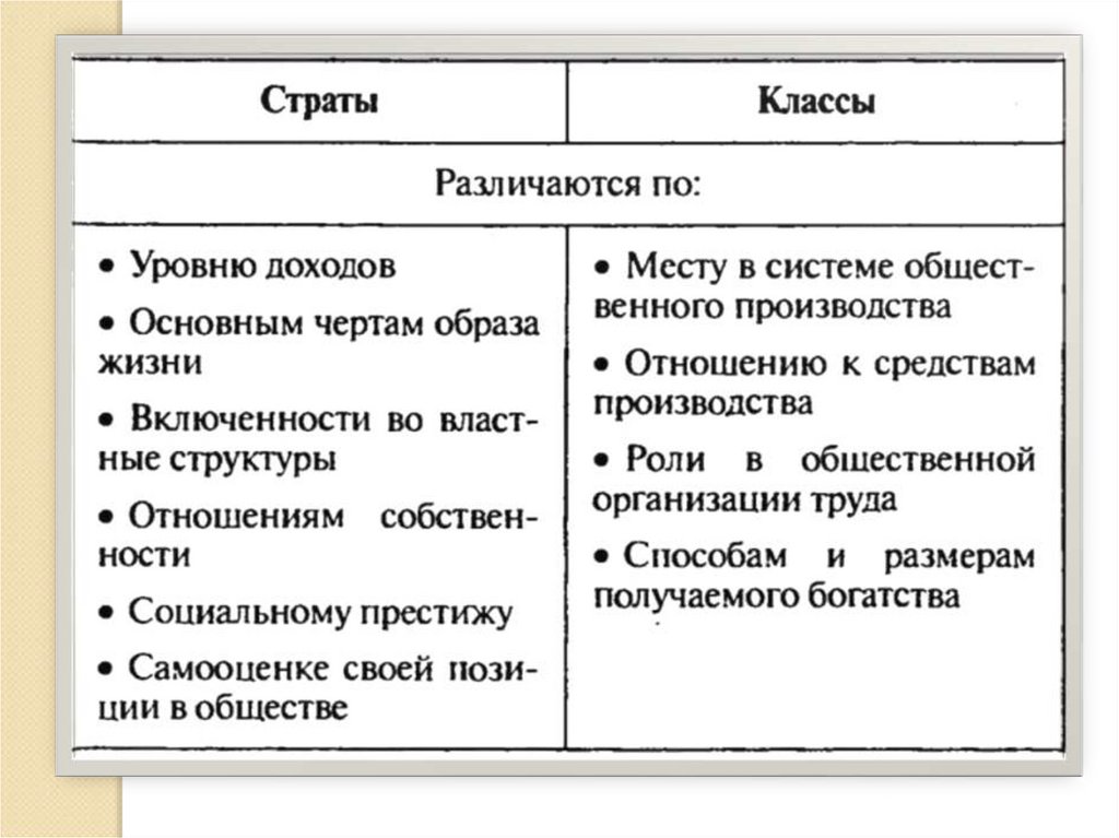 5. Страта – социальный слой людей, имеющих схожие признаки по доходам, власти, образованию, престижу.