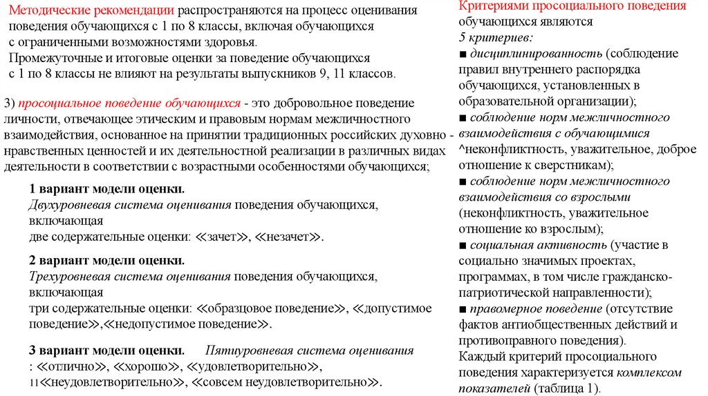 три содержательные оценки: ≪образцовое поведение≫, ≪допустимое