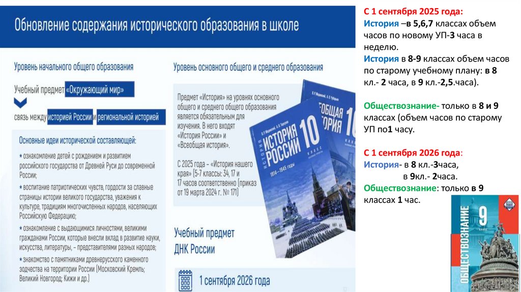 С 1 сентября 2025 года:История –в 5,6,7 классах объем