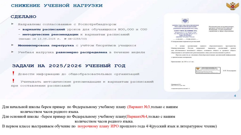 Для начальной школы берем пример по Федеральному учебному плану (Вариант №3,только с нашимколичеством часов родного языка.