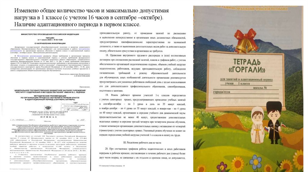 Изменено общее количество часов и максимально допустимаянагрузка в 1 классе (с учетом 16 часов в сентябре –октябре).