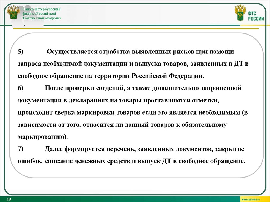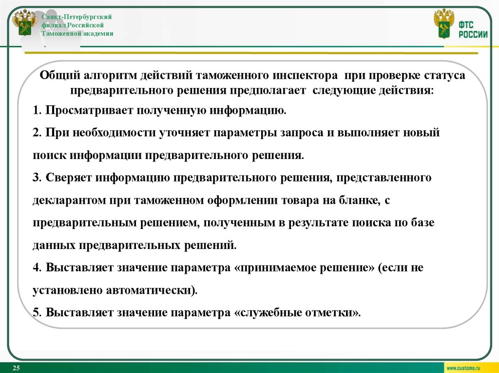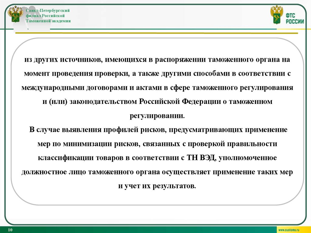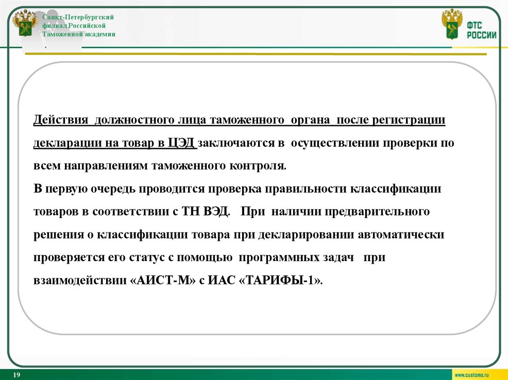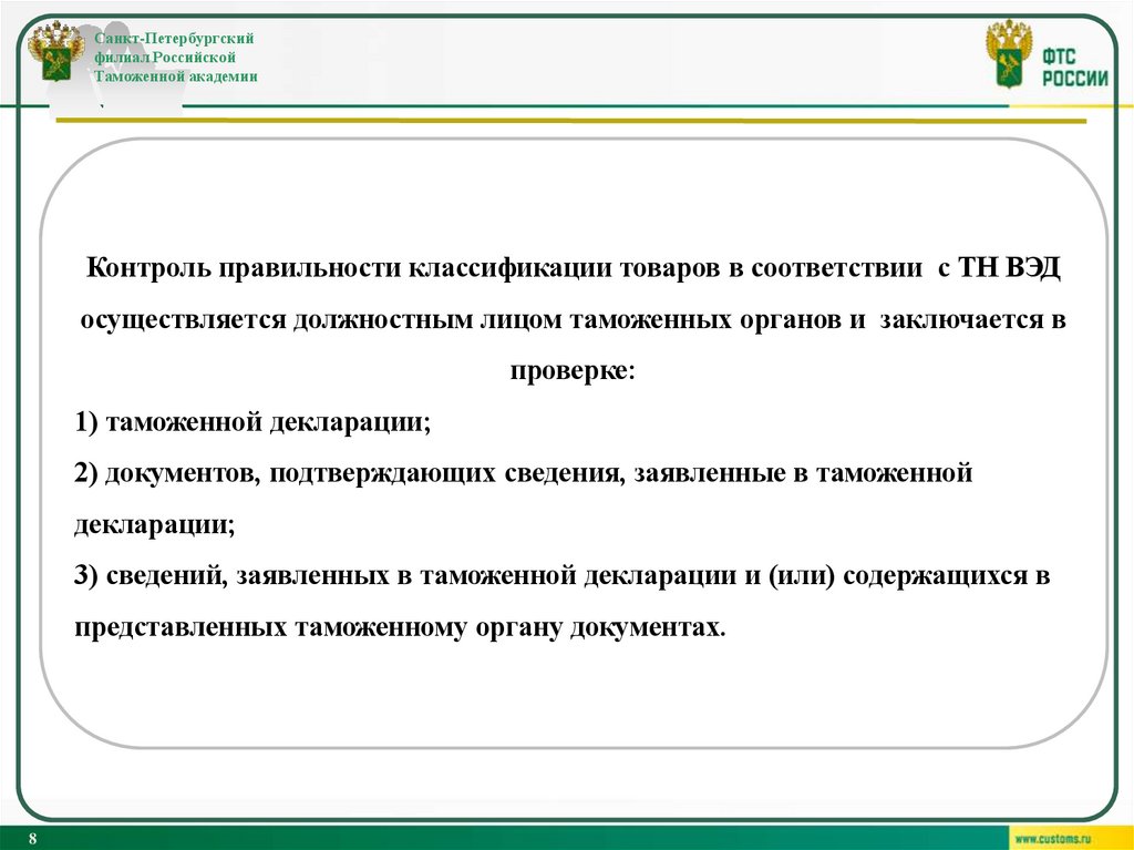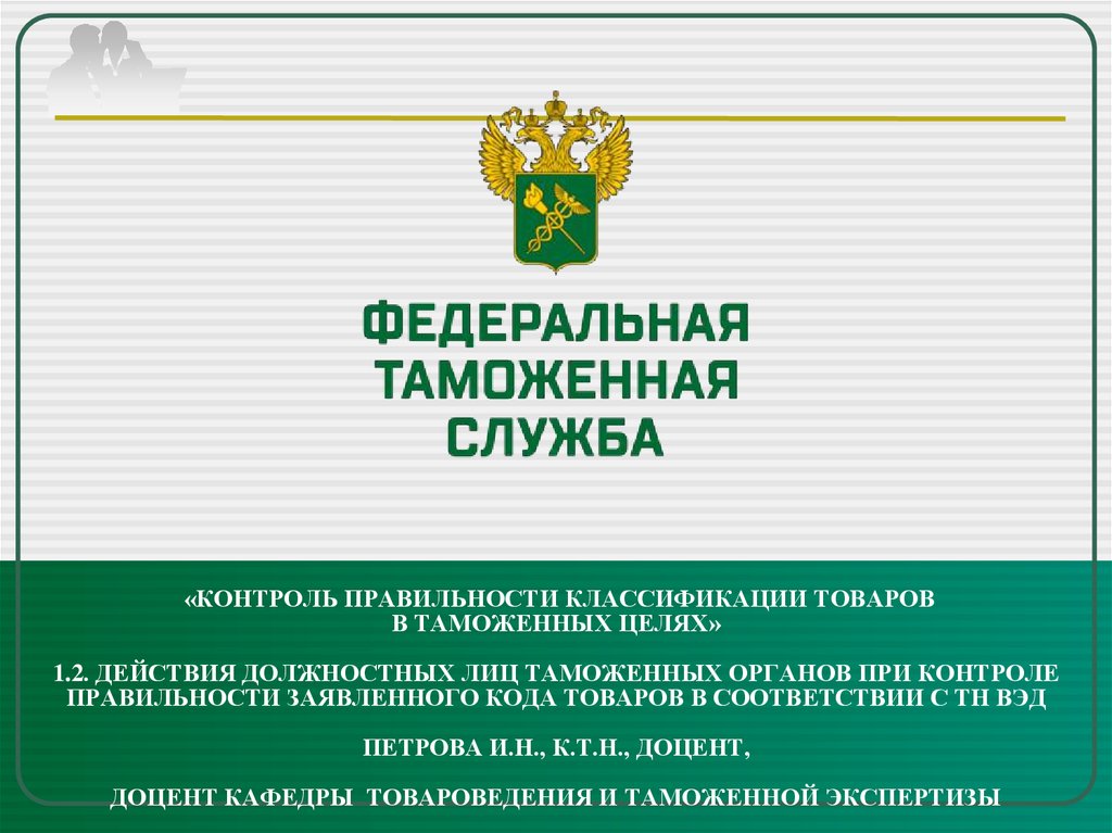 1. «Контроль правильности классификации товаров в таможенных целях» 1.2. Действия должностных лиц таможенных органов при контроле