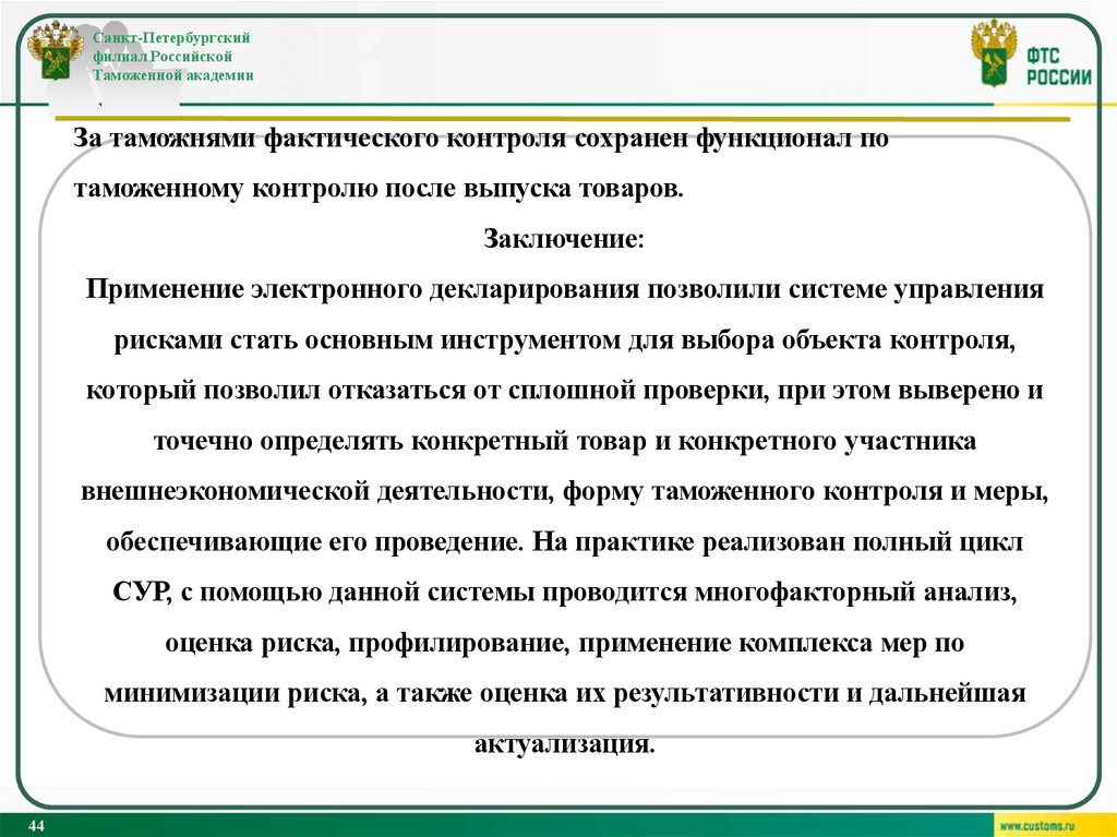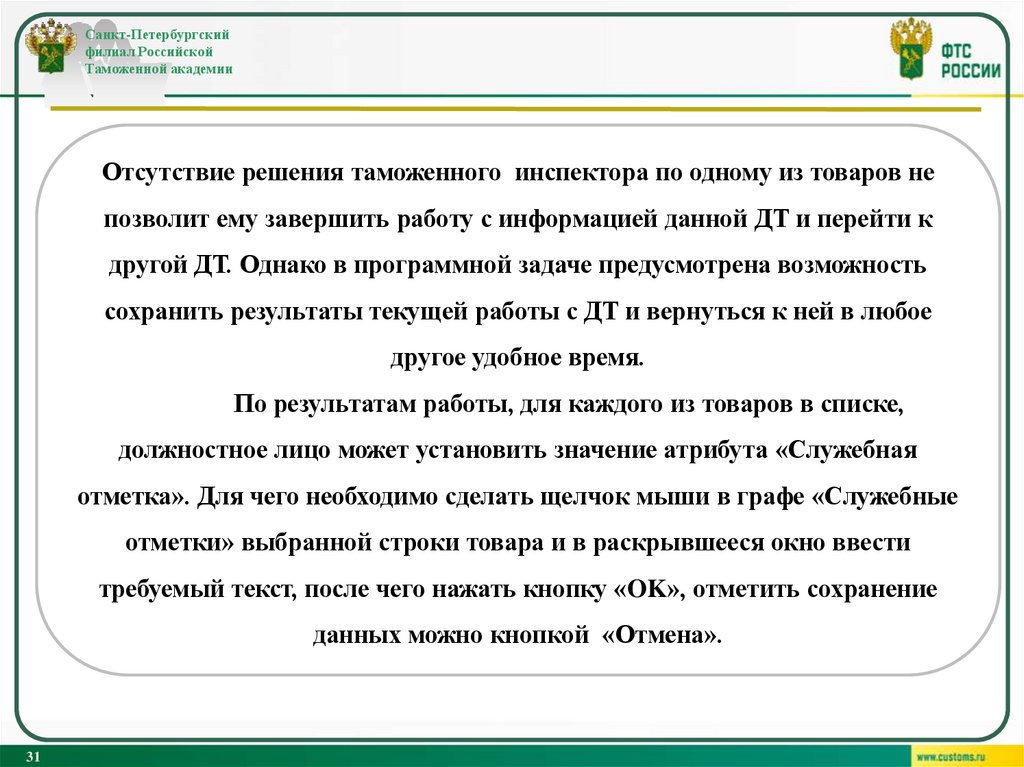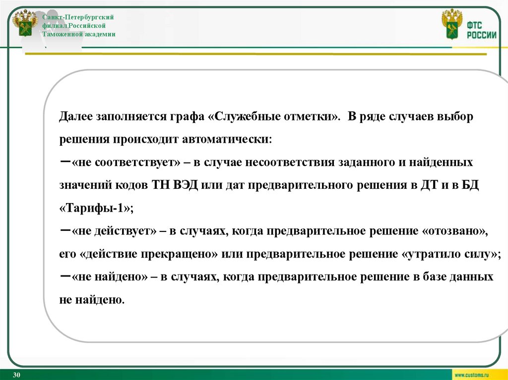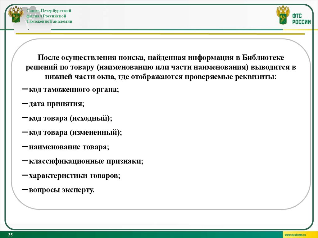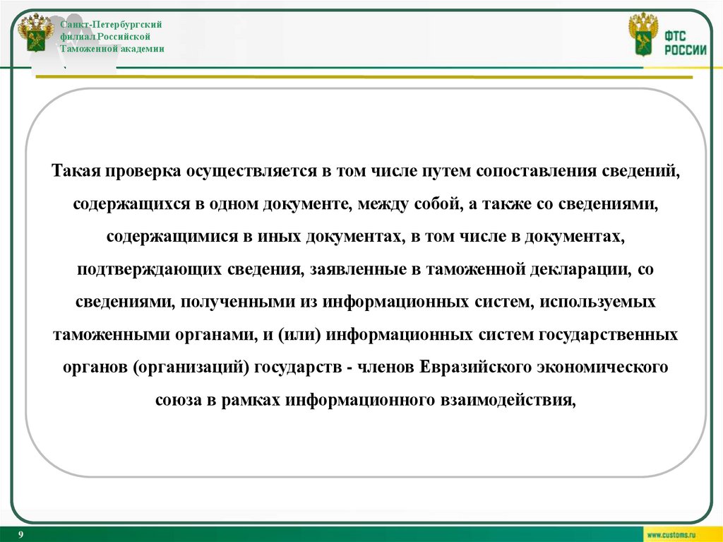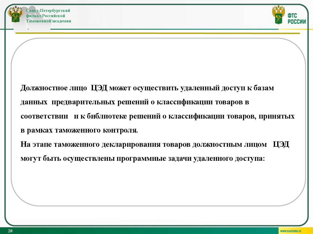 1. «Контроль правильности классификации товаров в таможенных целях» 1.2. Действия должностных лиц таможенных органов при контроле