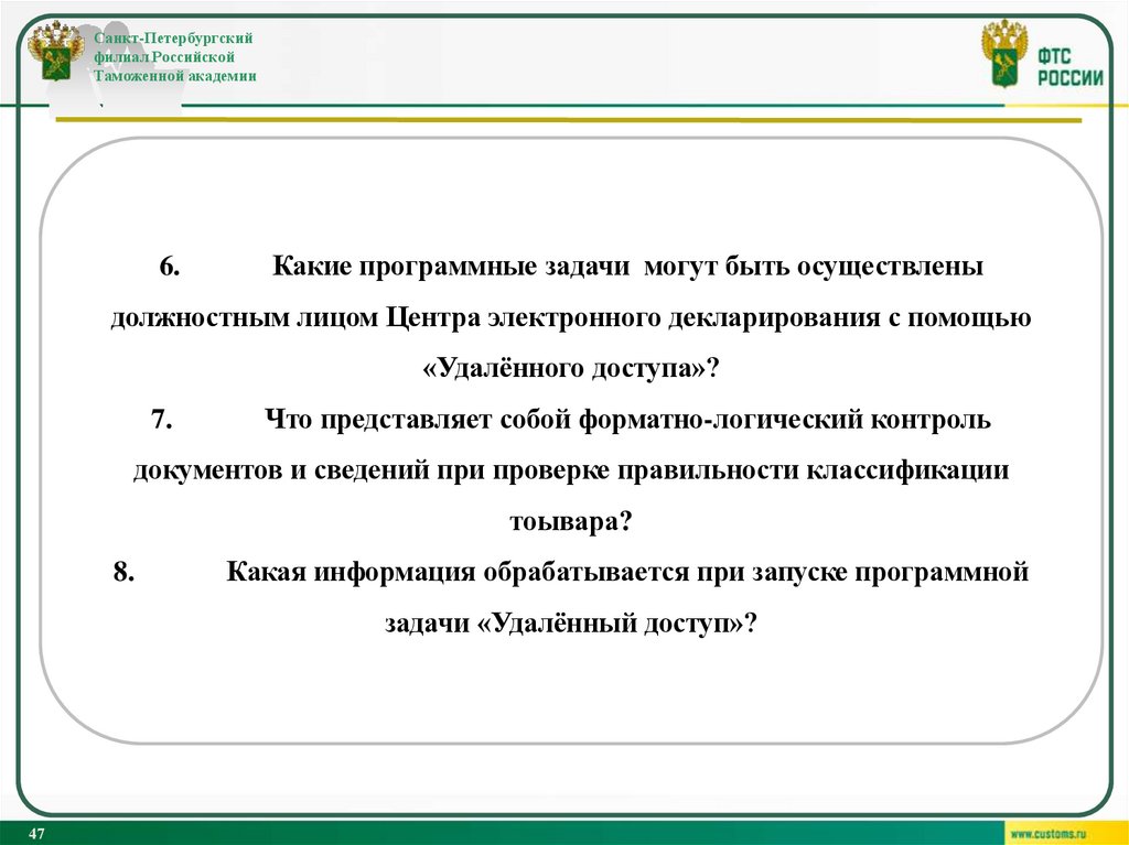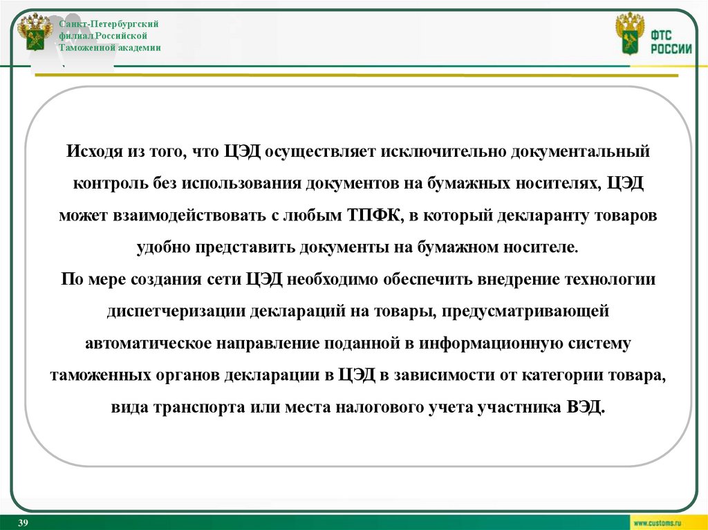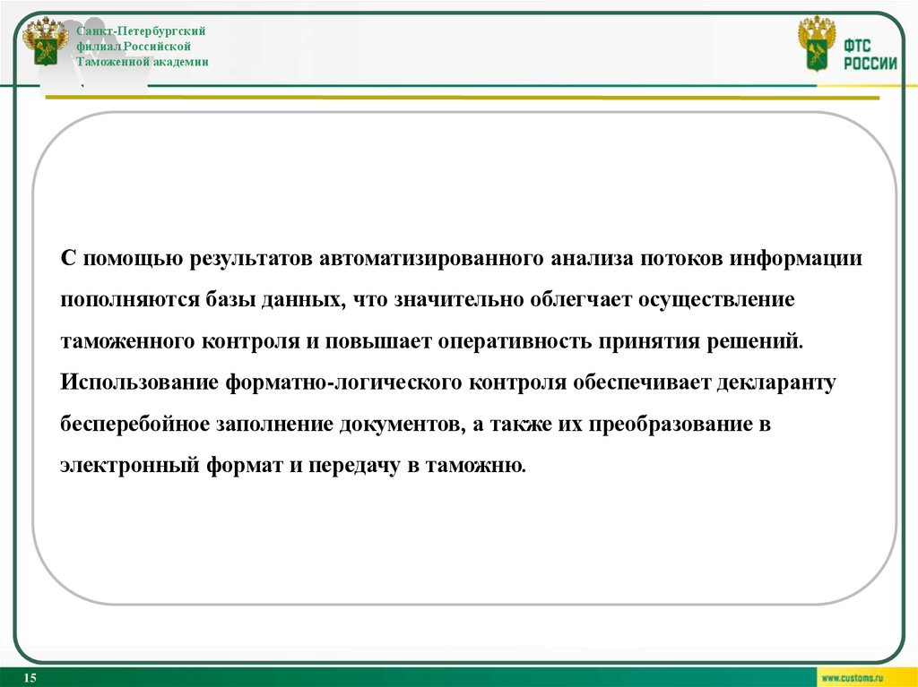 декларирования (ЦЭД). Массив таможенных деклараций автоматически