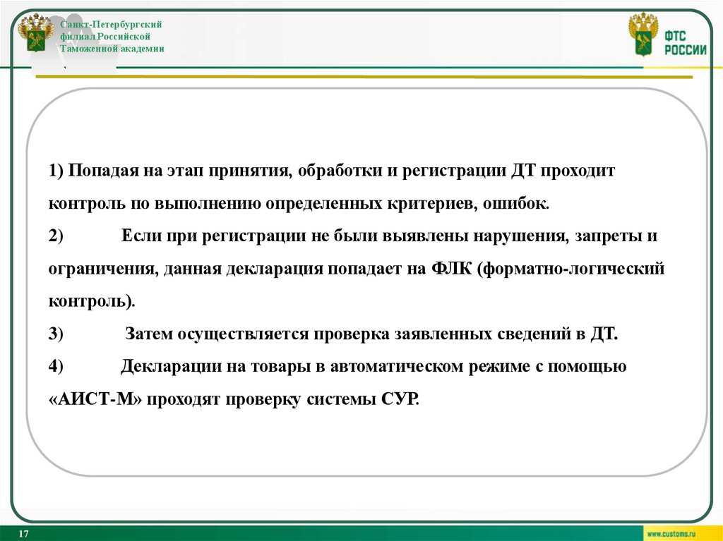11. Действия должностного лица таможенного органа на этапе регистрации декларации на товар в ЦЭД