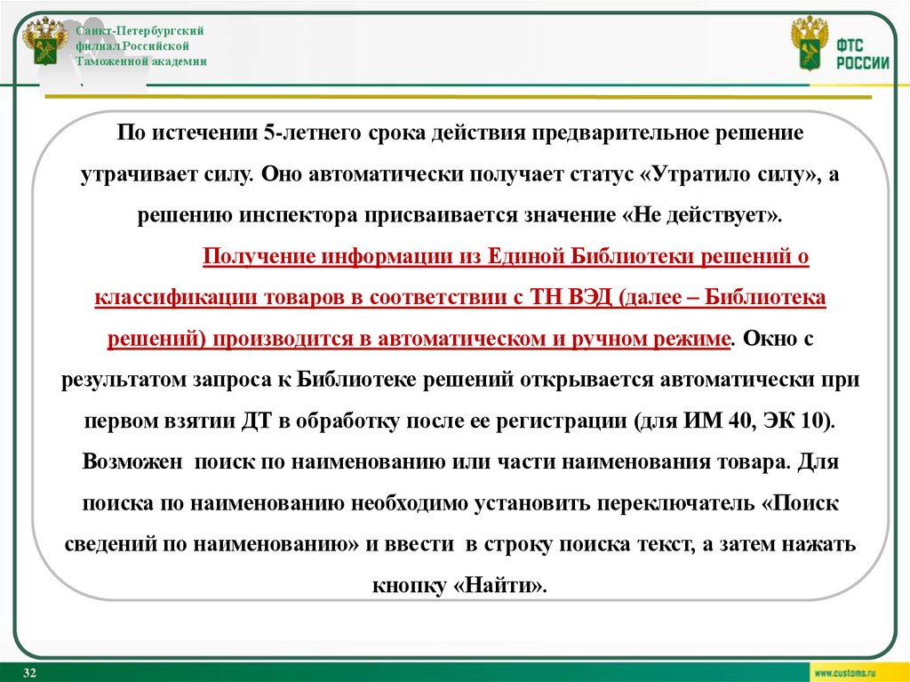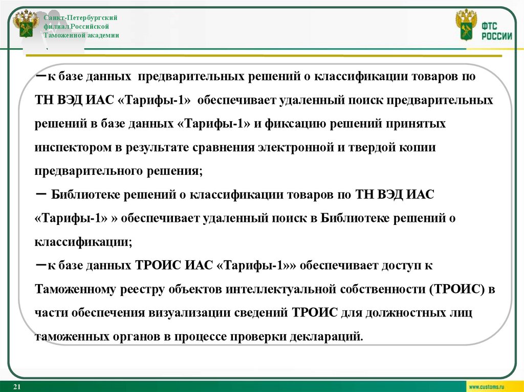 решений о классификации товаров в соответствии с ТН ВЭД?