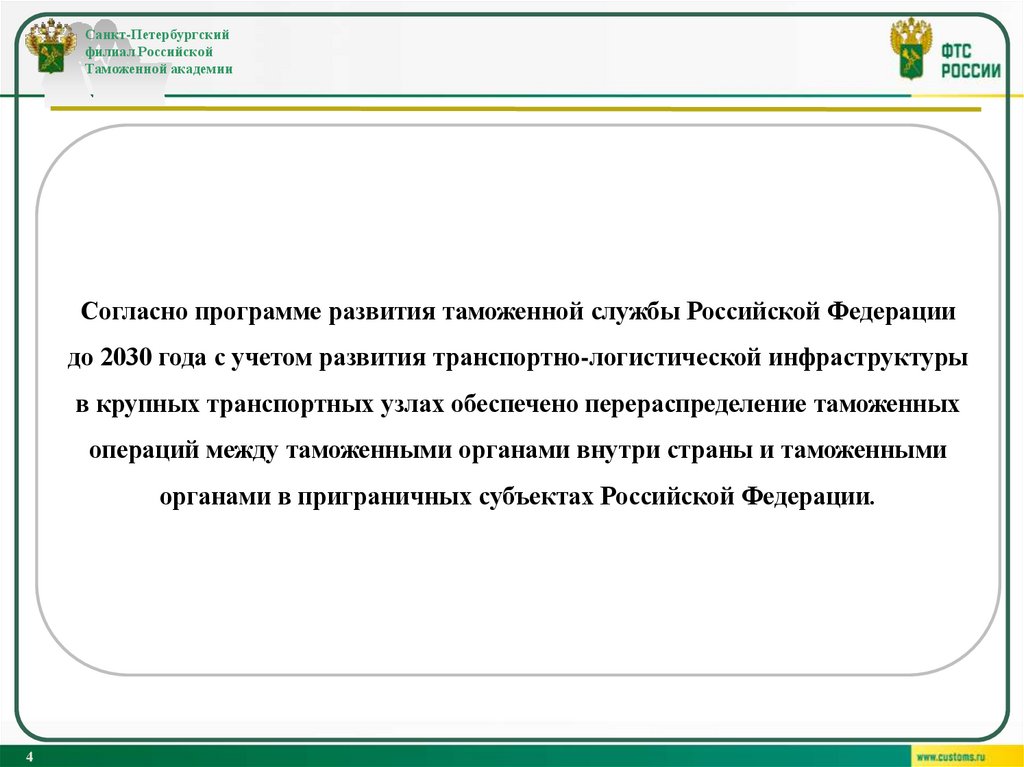 в крупных транспортных узлах обеспечено перераспределение таможенных