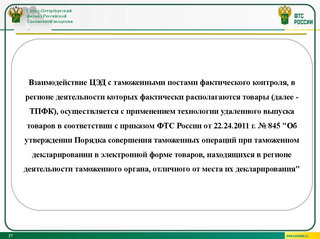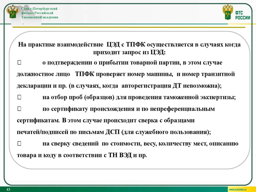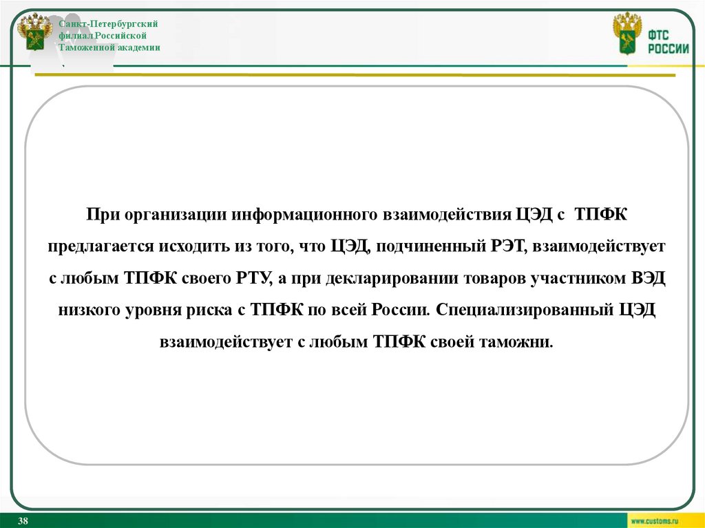 На практике взаимодействие ЦЭД с ТПФК осуществляется в случаях когда