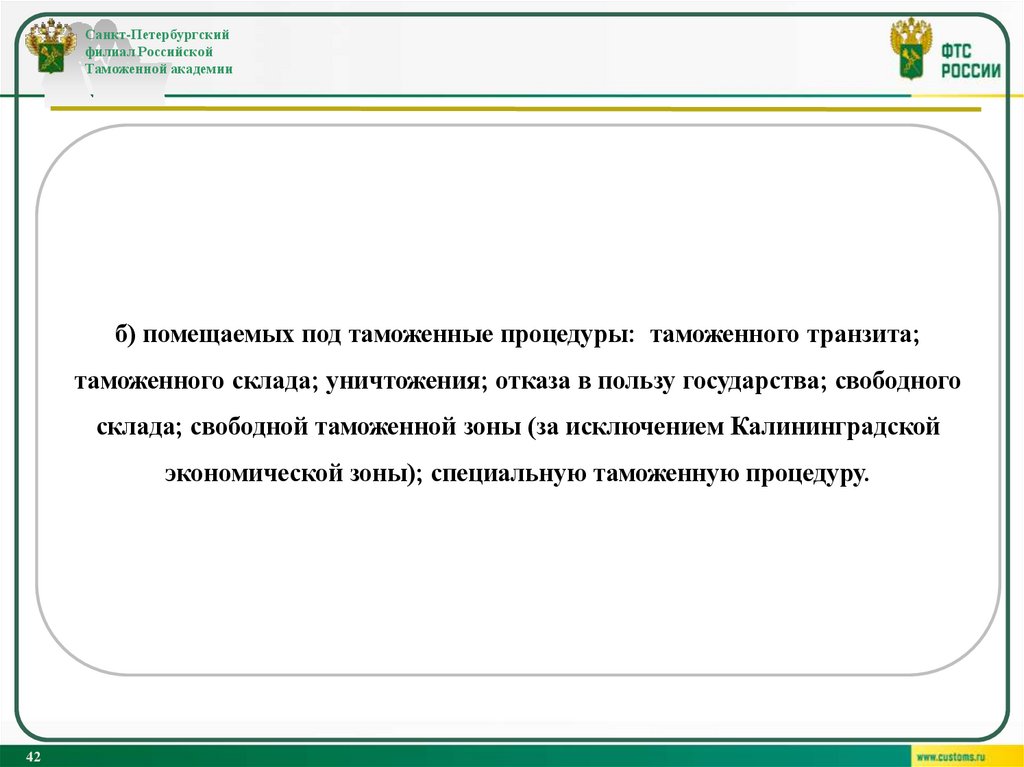 б) помещаемых под таможенные процедуры: таможенного транзита;