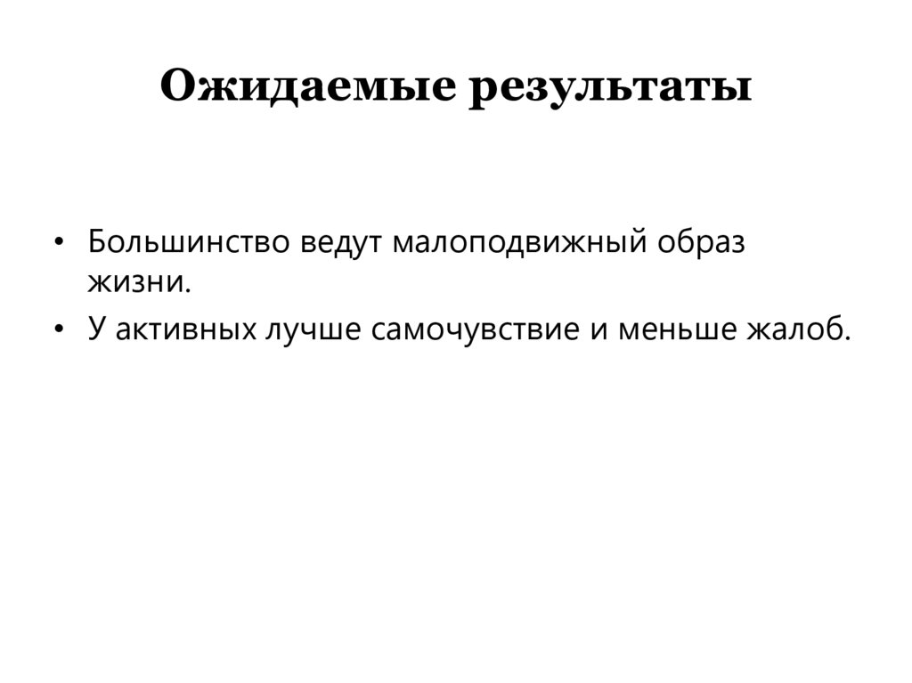 Ожидаемые результаты• Большинство ведут малоподвижный образ