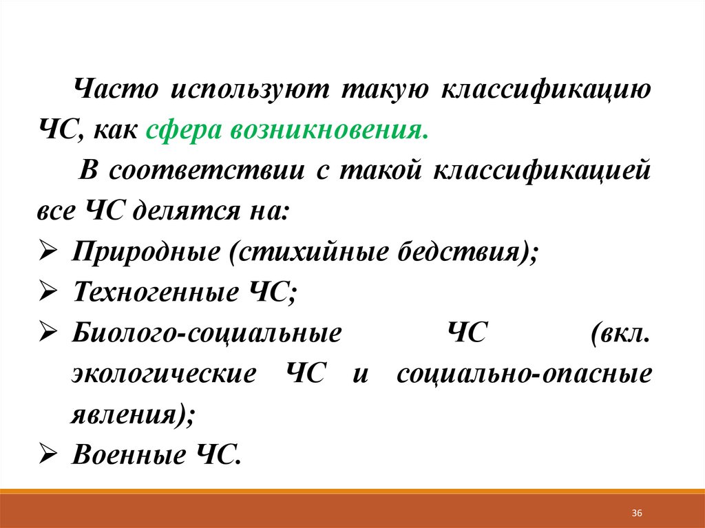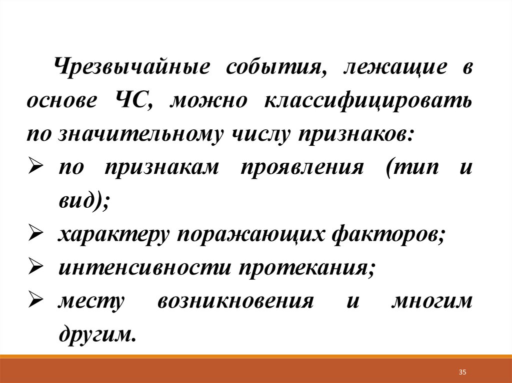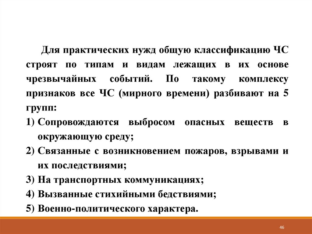 Для практических нужд общую классификацию ЧСстроят по типам и видам лежащих в их основе