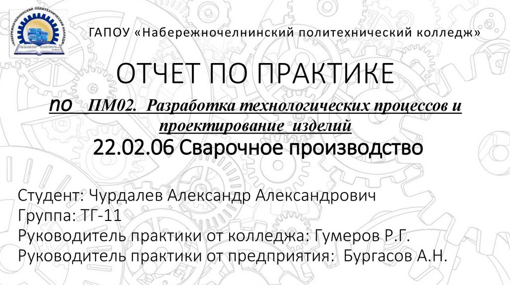 1. ОТЧЕТ ПО ПРАКТИКЕ по ПМ02. Разработка технологических процессов и проектирование изделий 22.02.06 Сварочное производство