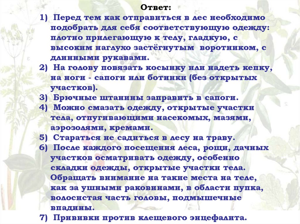 Ответ:1) Перед тем как отправиться в лес необходимо
