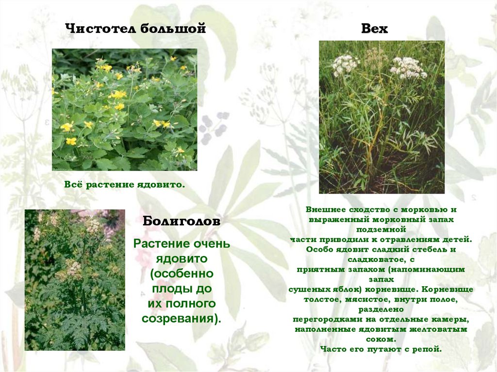 3. Вопрос №1: Назовите ядовитые дикорастущие растения. Какие именно части у этих растений являются ядовитыми?