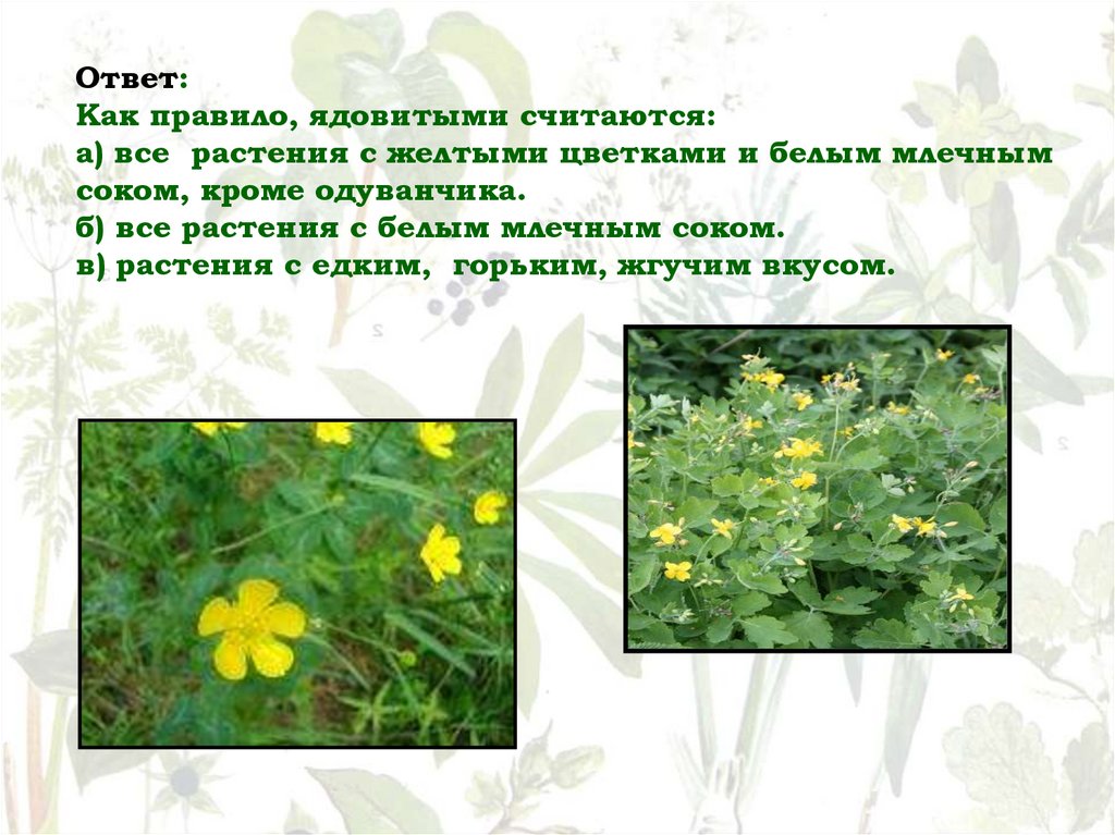 9. Вопрос №3: Назовите несколько признаков ядовитых растений?