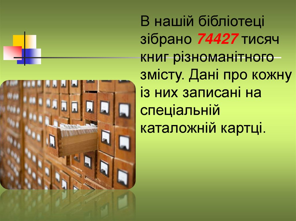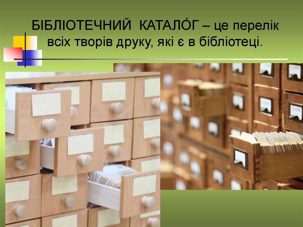БІБЛІОТЕЧНИЙ КАТАЛО́Г – це переліквсіх творів друку, які є в бібліотеці.