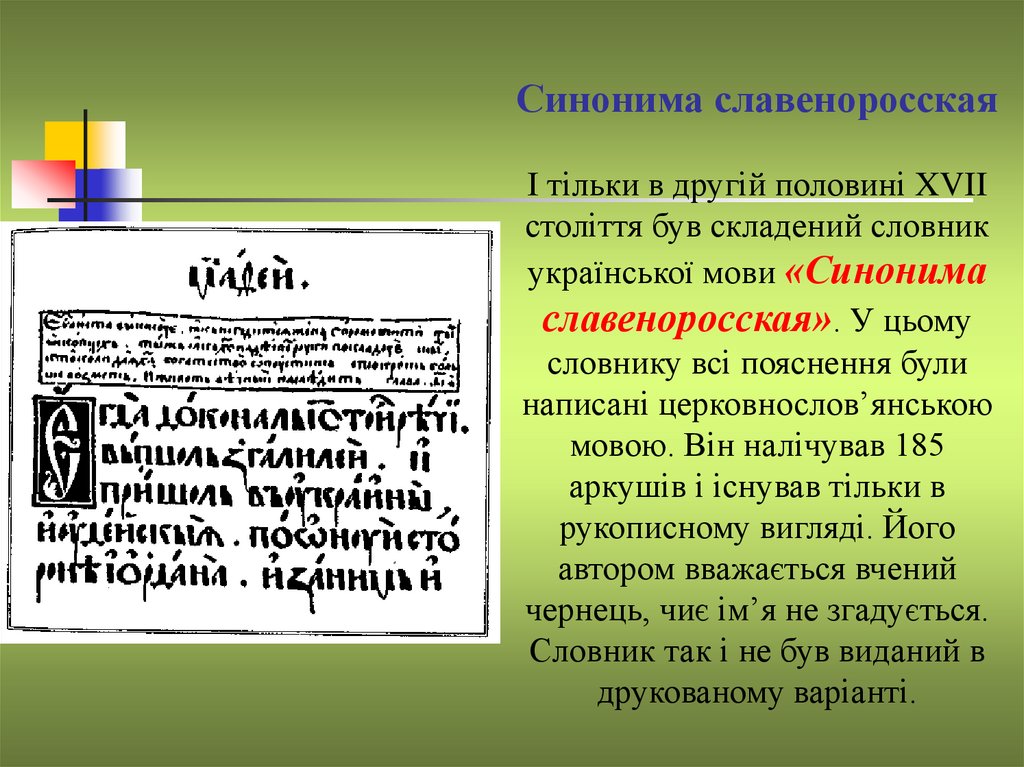 Синонима славеноросскаяІ тільки в другій половині XVII