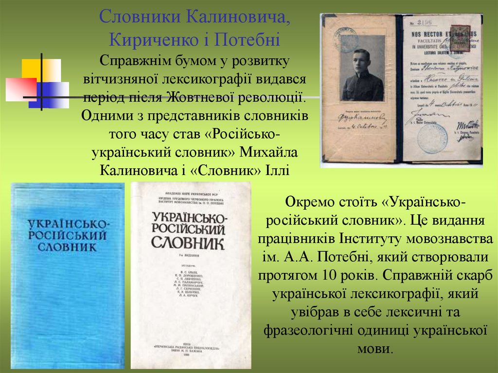 Словники Калиновича,Кириченко і Потебні