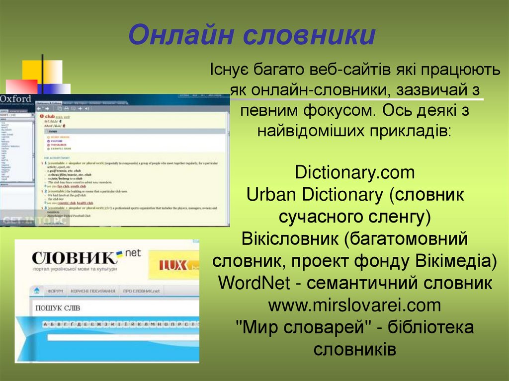 Онлайн словникиІснує багато веб-сайтів які працюють