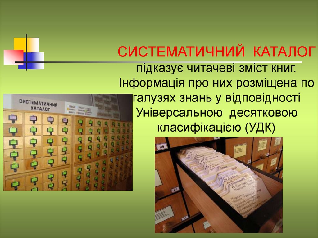 СИСТЕМАТИЧНИЙ КАТАЛОГпідказує читачеві зміст книг.