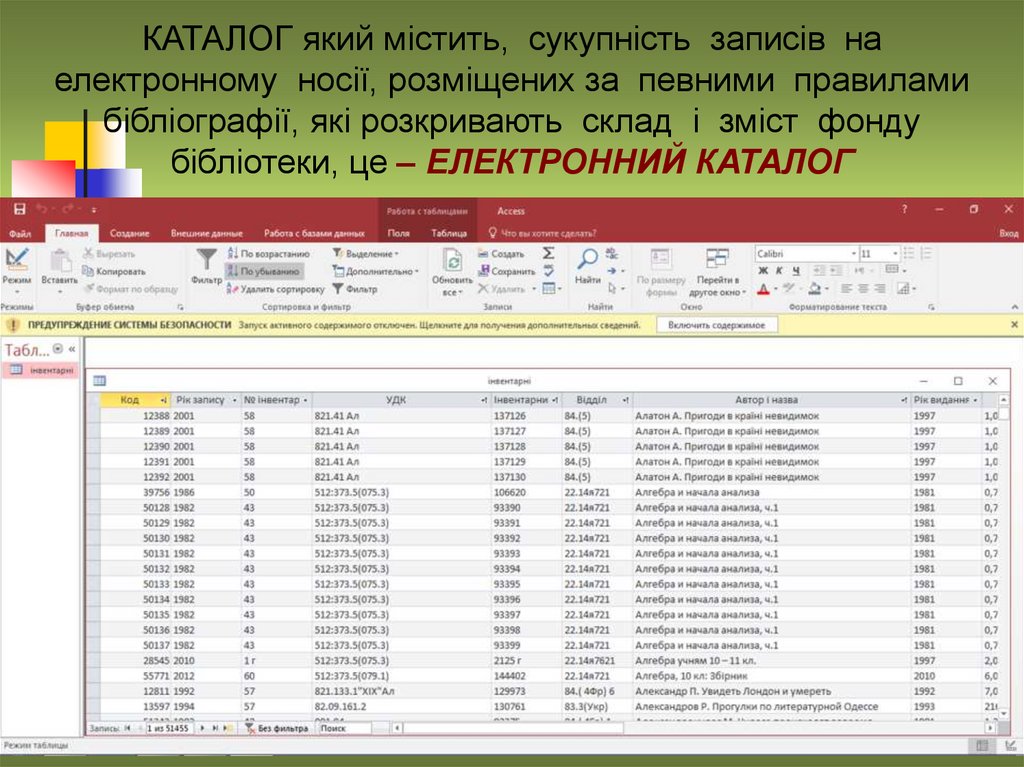 КАТАЛОГ який містить, сукупність записів наелектронному носії, розміщених за певними правилами