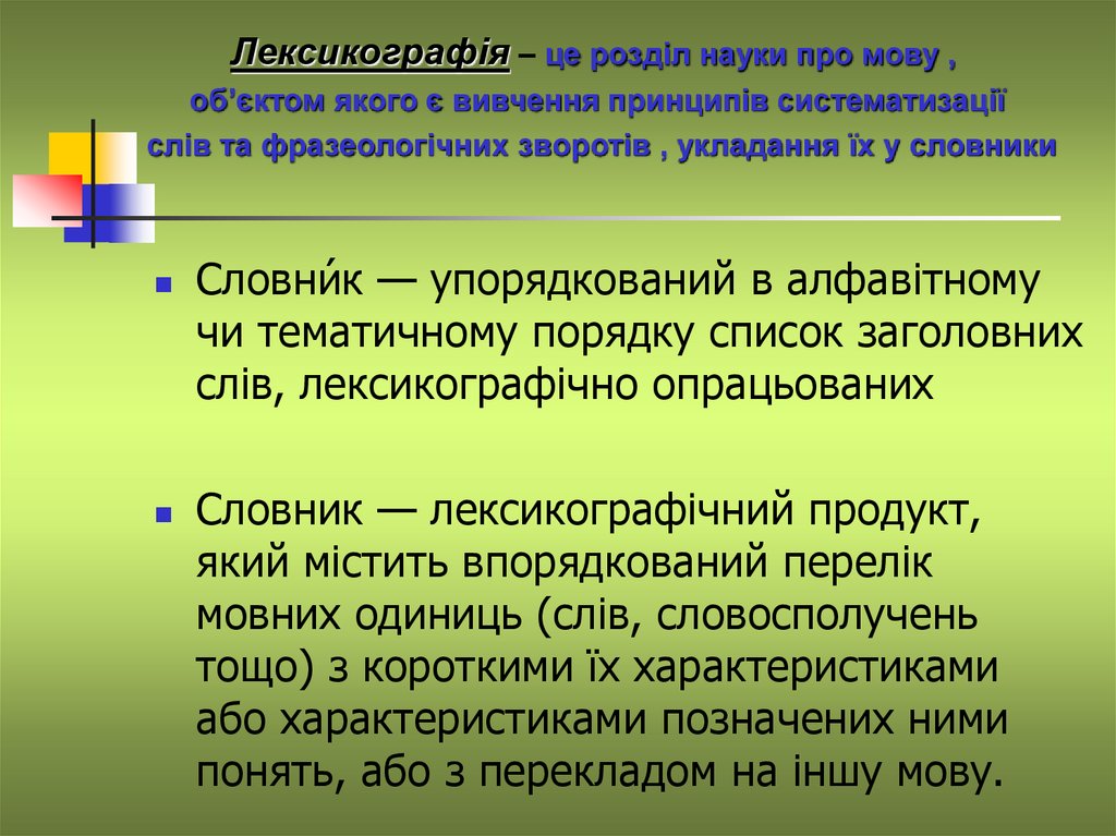 Лексикографія – це розділ науки про мову ,об’єктом якого є вивчення принципів систематизації
