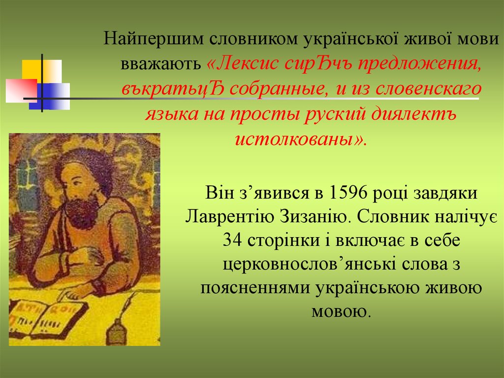 Лаврентію Зизанію. Словник налічує
