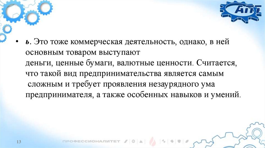 • ь. Это тоже коммерческая деятельность, однако, в нейосновным товаром выступают