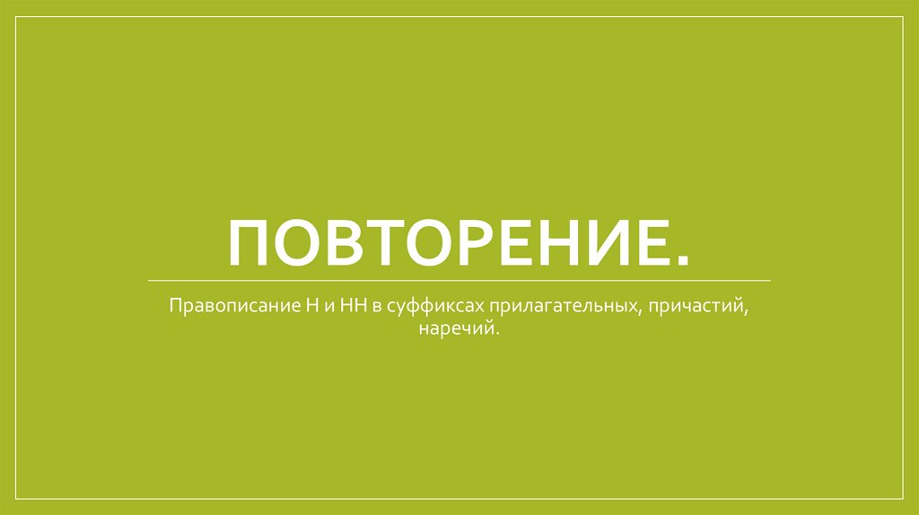ПОВТОРЕНИЕ.Правописание Н и НН в суффиксах прилагательных, причастий,