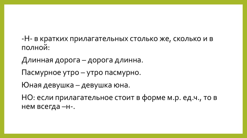 6. Сколько –н- в кратких прилагательных?