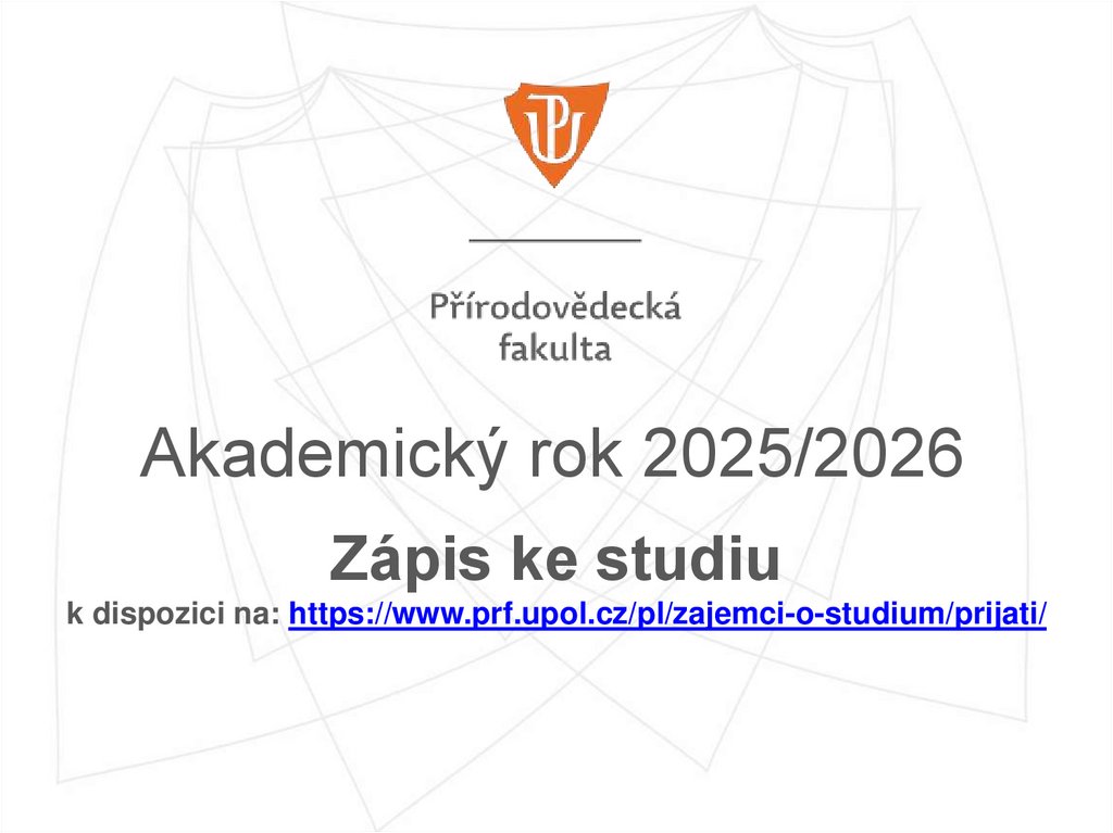 1. Zápis ke studiu k dispozici na: https://www.prf.upol.cz/pl/zajemci-o-studium/prijati/