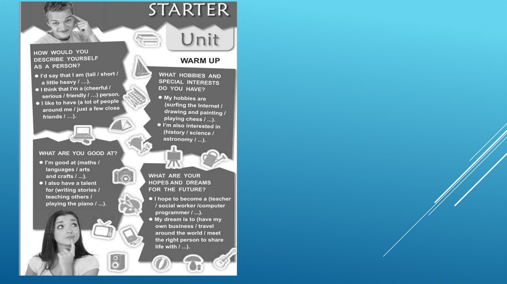 Homework Tell your classmates about yourself.
