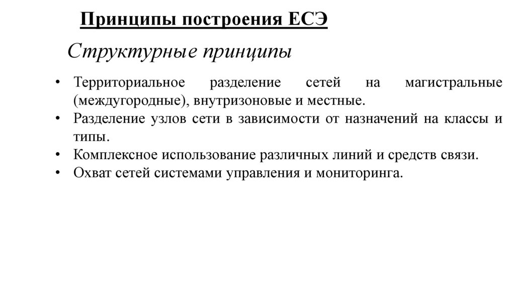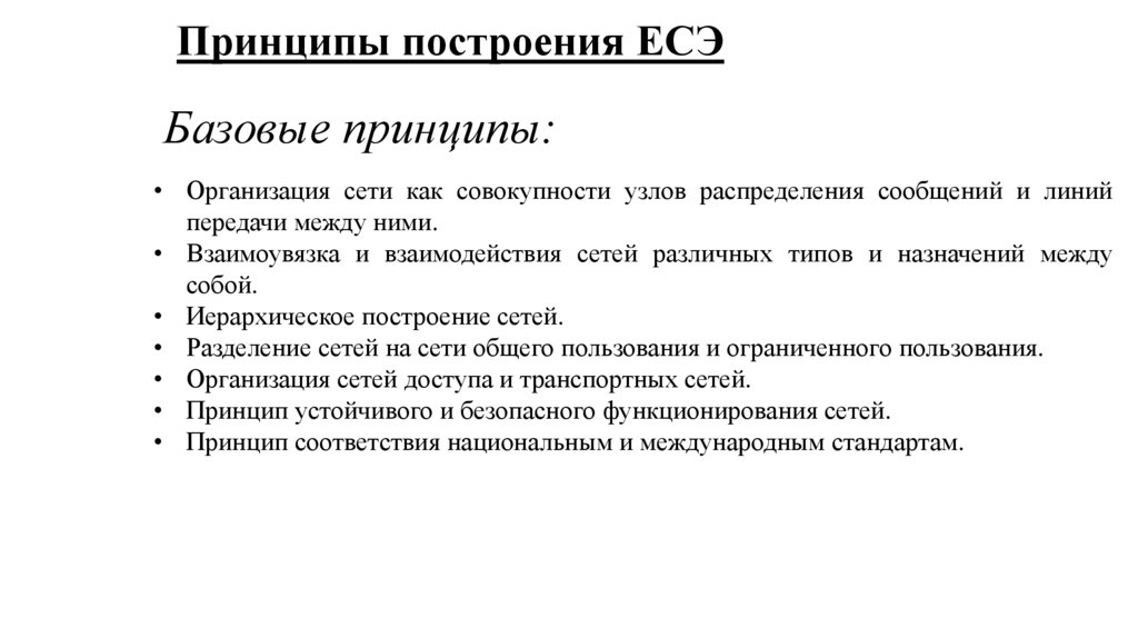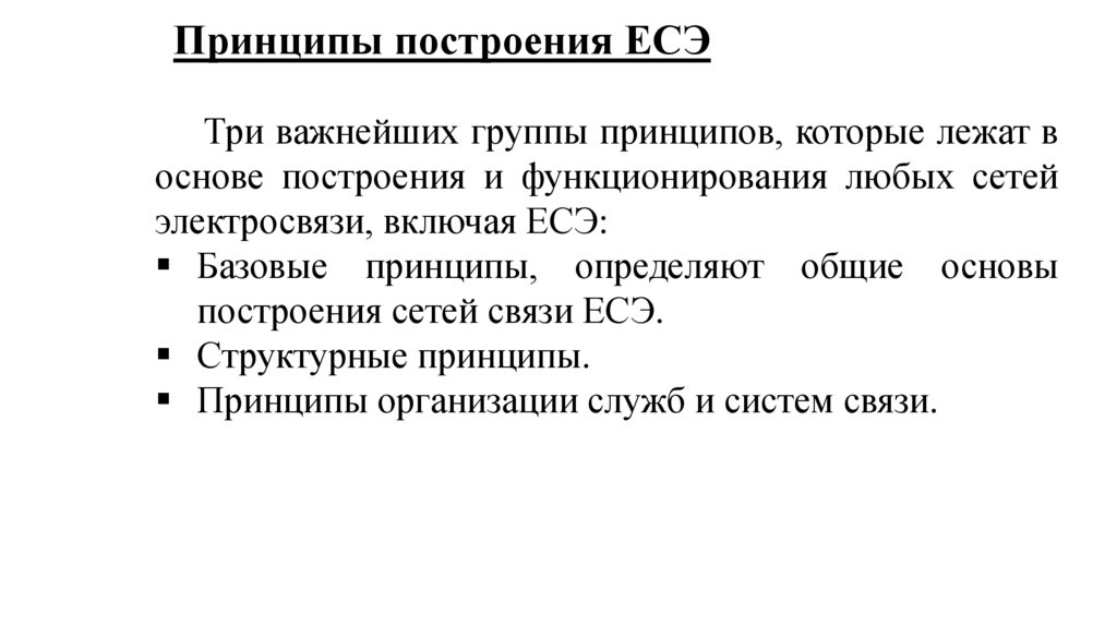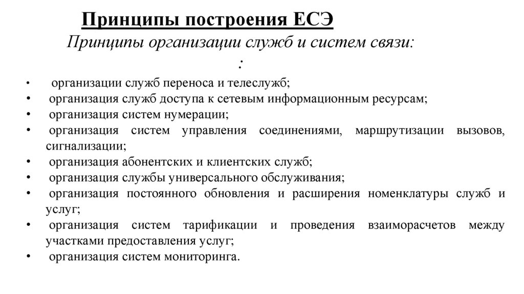 Принципы построения ЕСЭПринципы организации служб и систем связи: