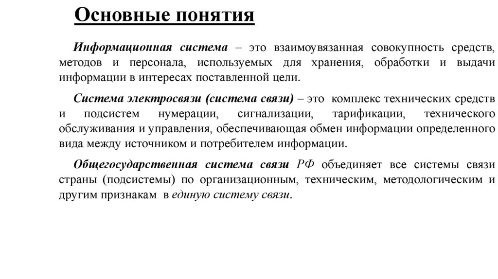 Основные понятияИнформационная система – это взаимоувязанная совокупность средств,
