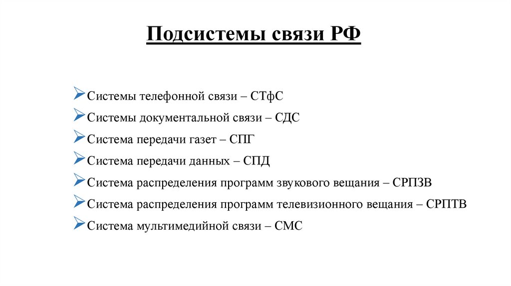 Подсистемы связи РФСистемы телефонной связи – СТфС