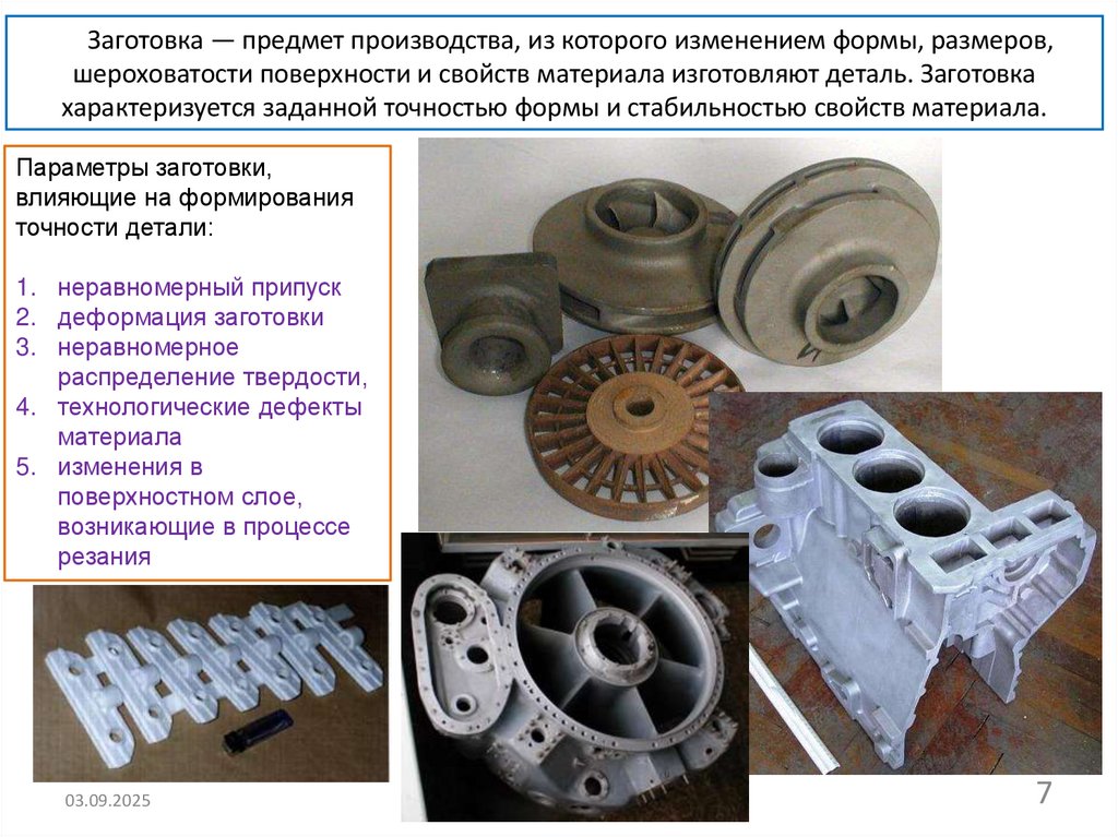 Заготовка — предмет производства, из которого изменением формы, размеров,шероховатости поверхности и свойств материала изготовляют деталь. Заготовка