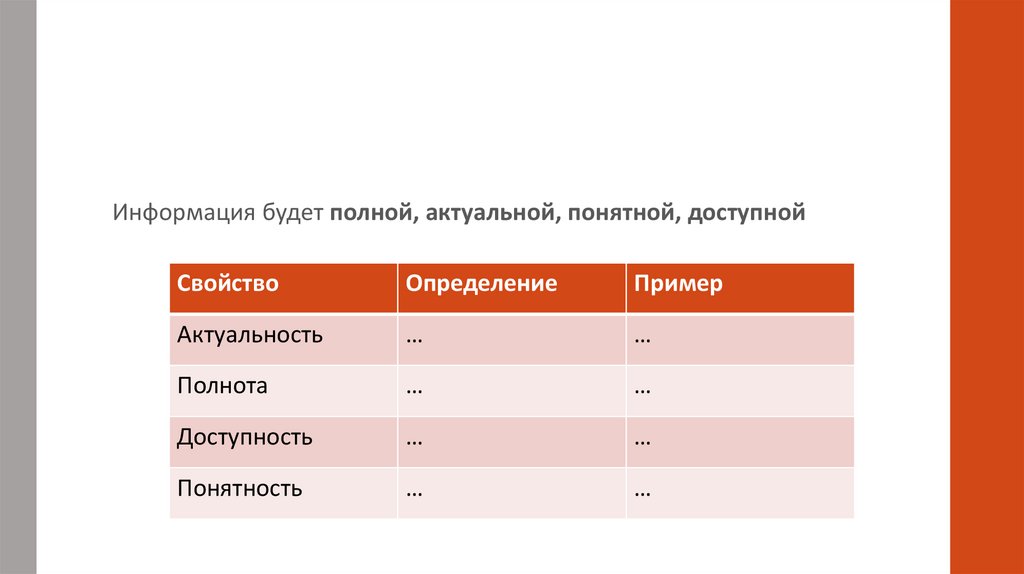 Информация будет полной, актуальной, понятной, доступнойСвойство
