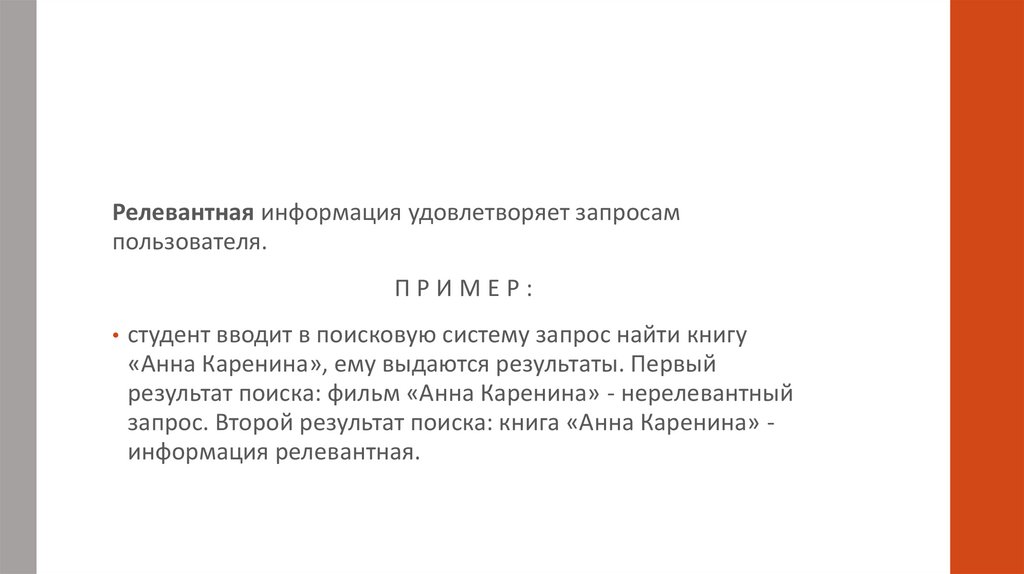 Релевантная информация удовлетворяет запросампользователя.