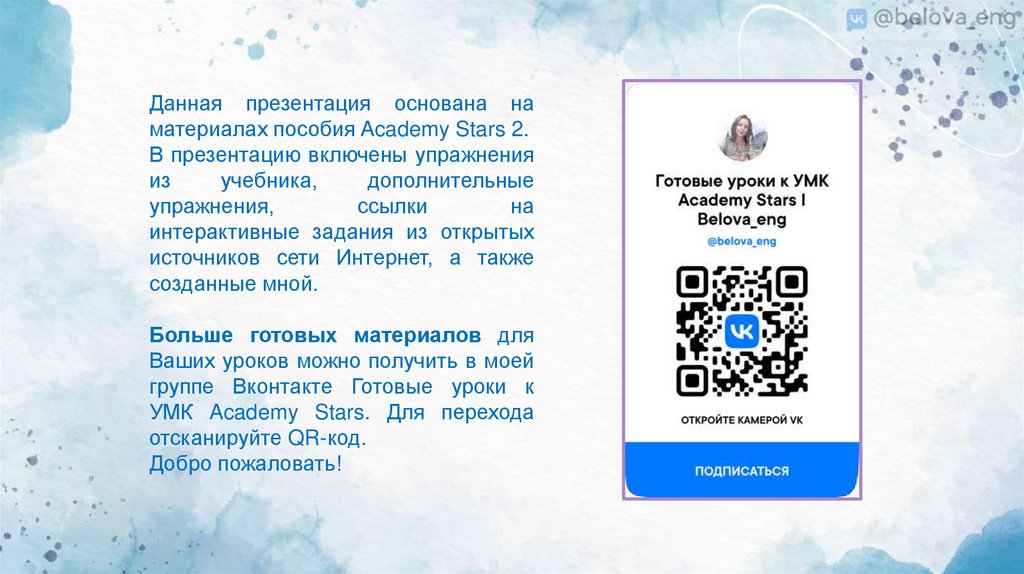 Данная презентация основана наматериалах пособия Academy Stars 2.