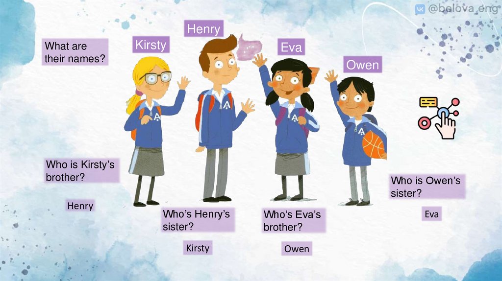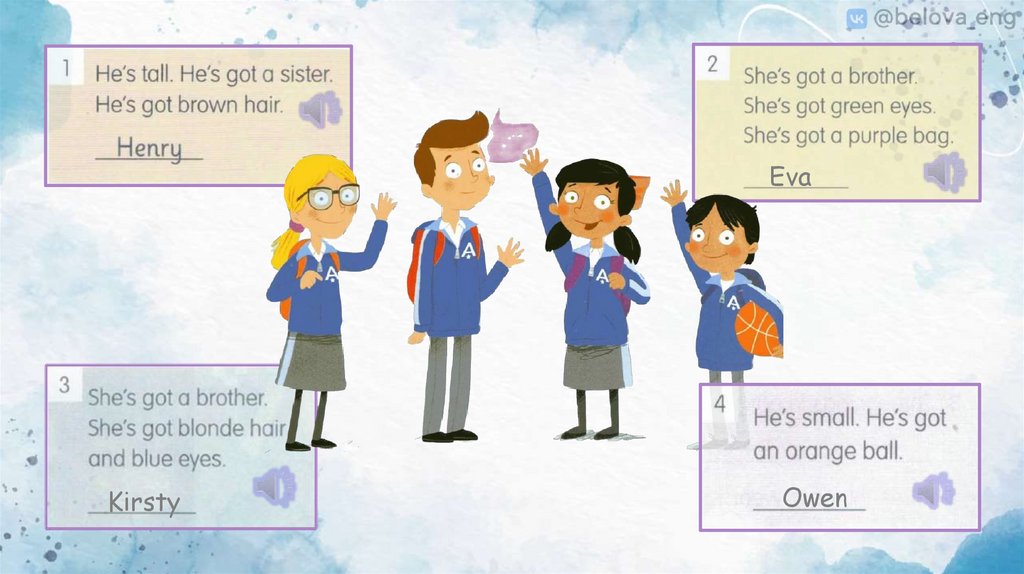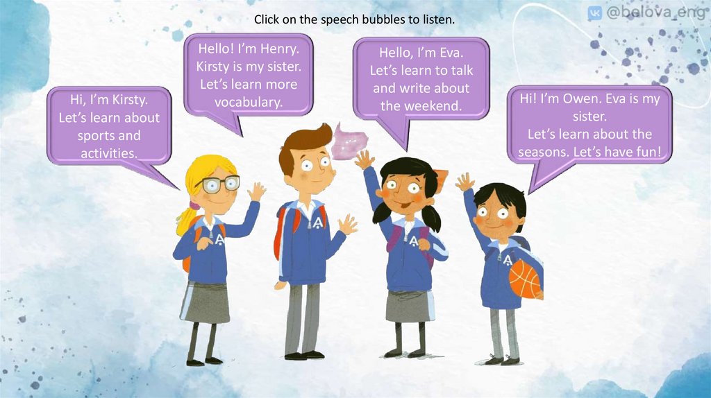 Click on the speech bubbles to listen.Hi, I’m Kirsty.