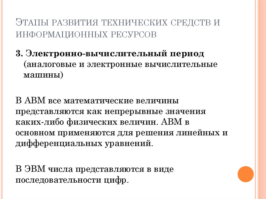 ЭТАПЫ РАЗВИТИЯ ТЕХНИЧЕСКИХ СРЕДСТВ ИИНФОРМАЦИОННЫХ РЕСУРСОВ
