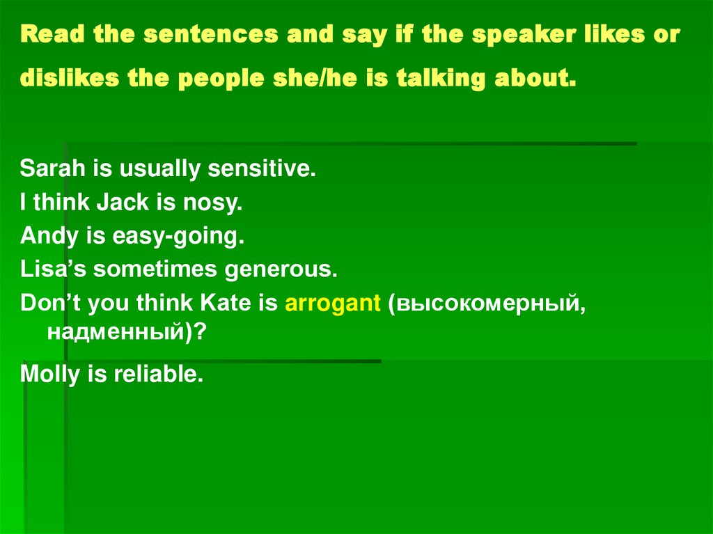 Complete the sentences with the correct words.Shy, patient, reliable, sensitive, selfish, sociable, honest,