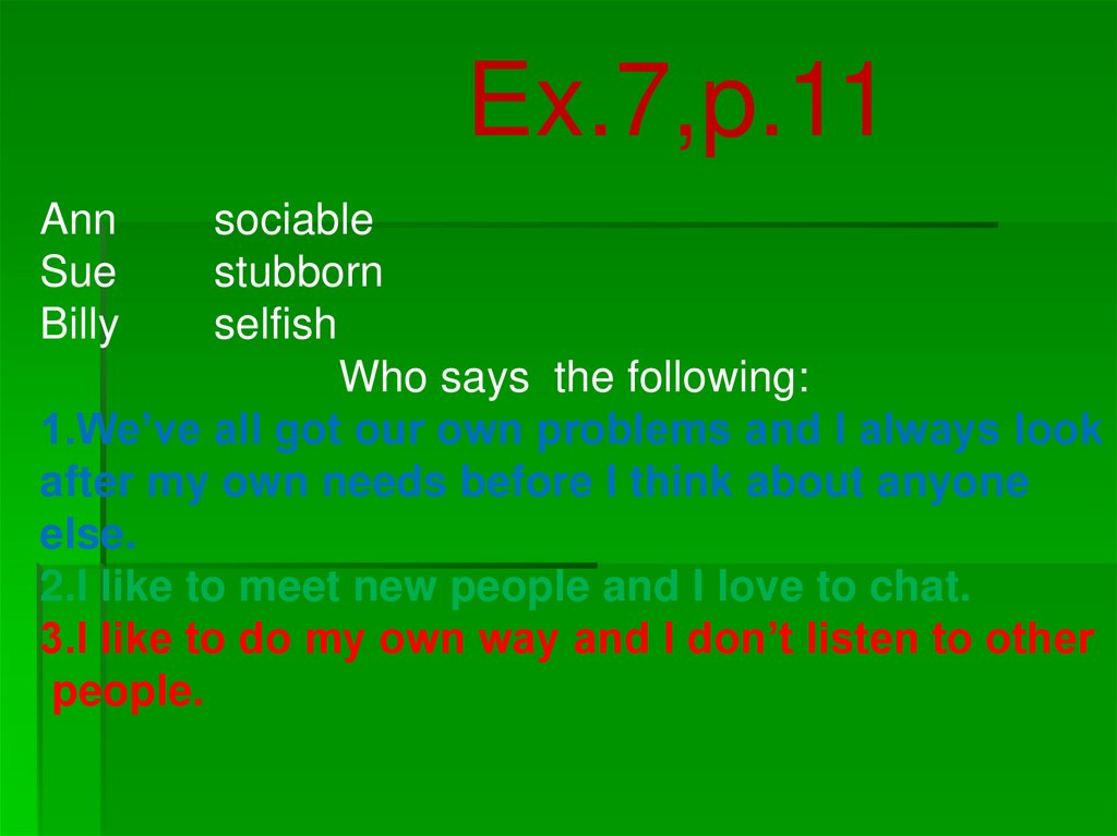 Ex.8,p.11Which of the adjectives best describe you?